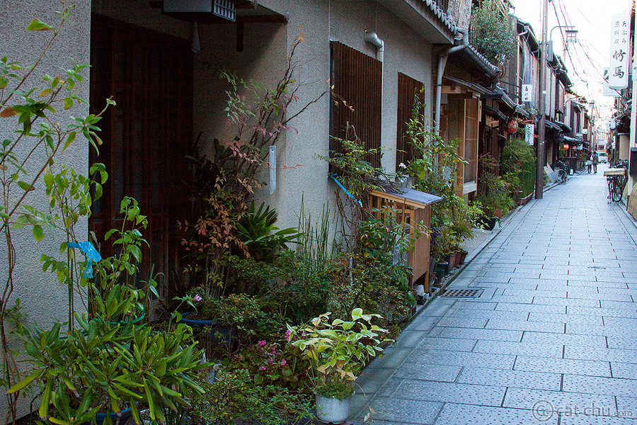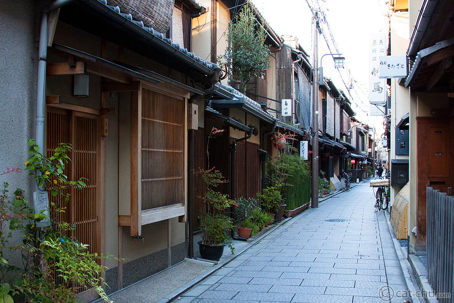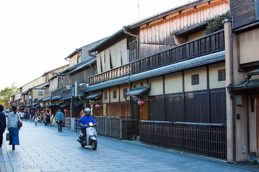 From here, we returned to the city and separated from our friends. They went to a cat cafe (I’m allergic to cats, so I passed on this), while my husband and I checked out Gion. Gion is a geisha district, filled with old style wooden buildings. I love how Kyoto is a mix of modern and old style areas.