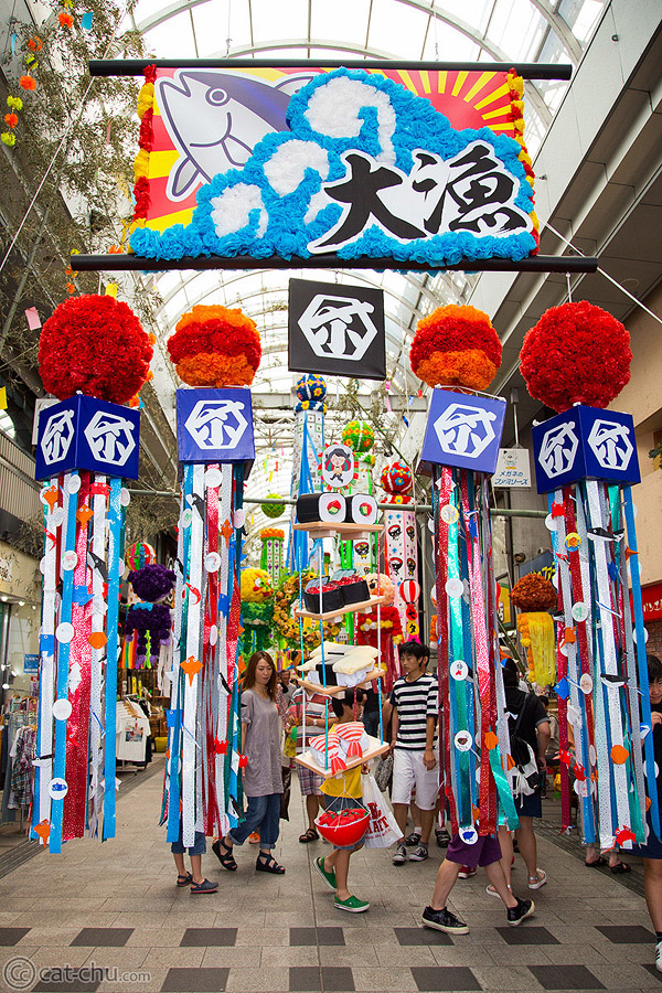 Afterwards, we felt like we needed to walk off that noodle, so we went into a nearby shopping street. If you read part 4, I talked about the Tanabata decorations in Sendai, and it looked like Morioka had its own version of it. The decorations were smaller, but they seemed more elaborate!