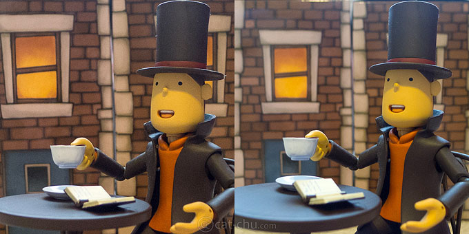 In these two photos, I did not move the figure or background at all. On the left, I stood farther back and cropped the photo. You can see that the photo looks more “flat”. On the right, I actually got up closer to the figure. It’s subtle, but you can see more dimension in the photo because both the foreground and background are slightly more blurred.