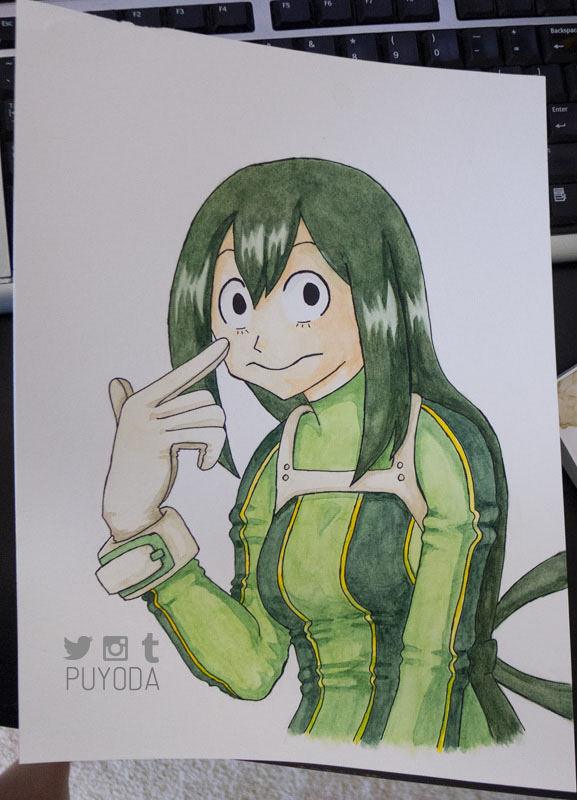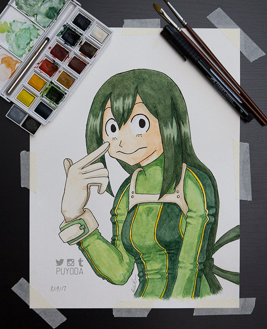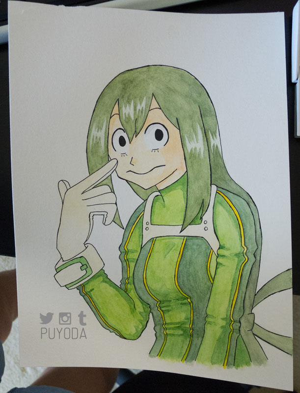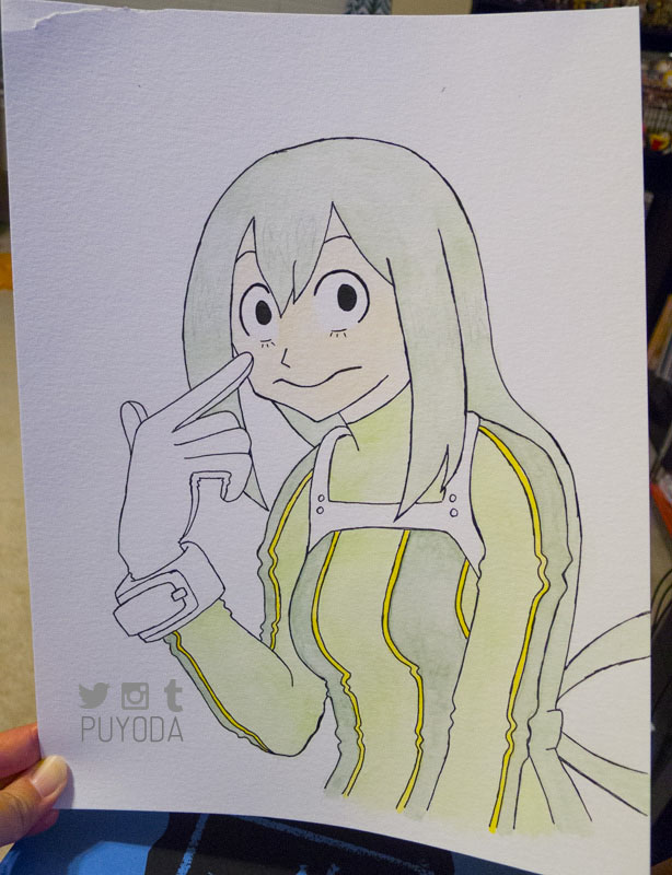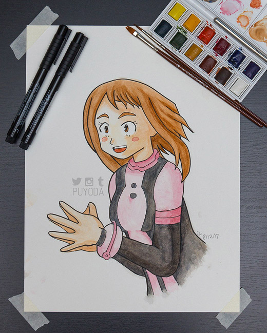I decided to draw and paint My Hero Academia characters for practice because… there’s a lot of characters and… I need a lot of practice… These paintings are in the order that I did them, and you can see that they get a little better each time. I still don’t have control of the brush and paints the way I want to, but this is a start!