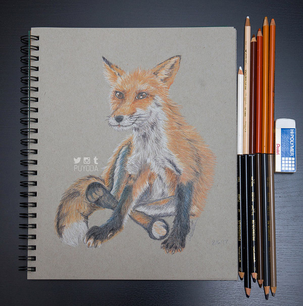 I really like the fox drawing and I agree, the color of the paper gives a different effect! Maybe you can experiment more with that 🙂