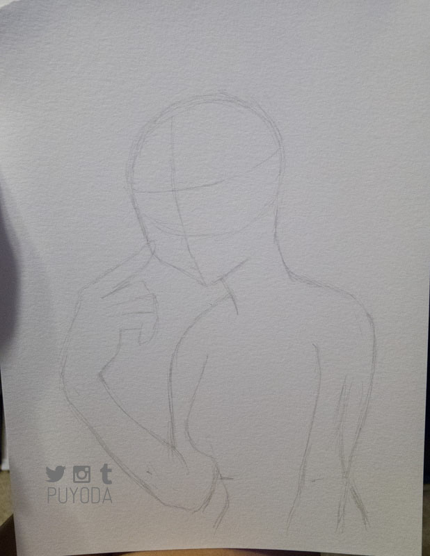 I used a HB pencil and blending stubs for most of it and a mechanical pencil for the outlines. Here’s a look at the base sketch and outline before I shaded it. (Click for full images.)