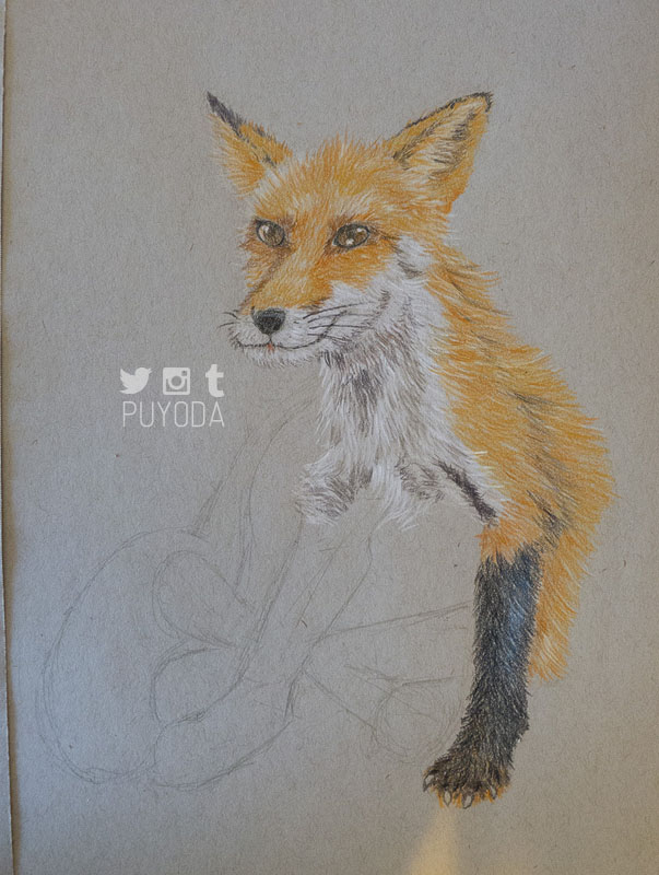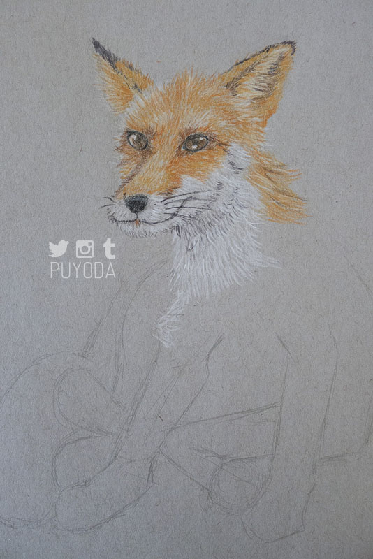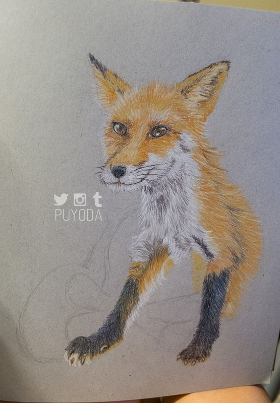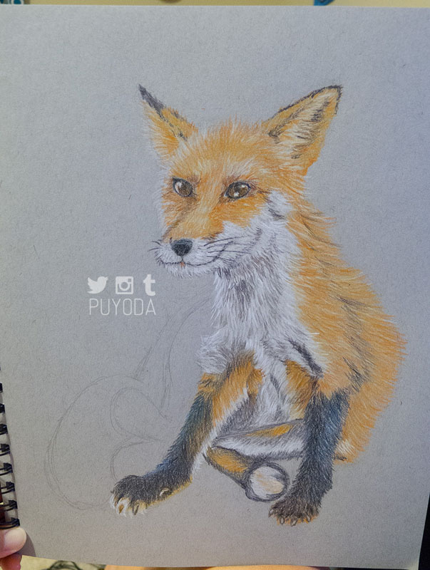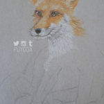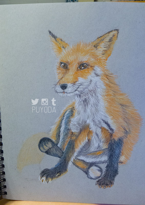 The one I did in 2004 was so much better! It had better colors, shading, and blending. I didn’t realize how much worse my skills had actually gotten. I definitely wanted to work on it, so I bought some toned-paper and drew a fox that I saw when I visited the Zao Fox Village in Japan.