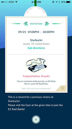 I also got a surprise invite from Pokemon Go last month. I was confused as to what it was until other friends were like, “wtf that’s for Mewtwo”. I apparently raided at a gym that was eligible for an invite?!