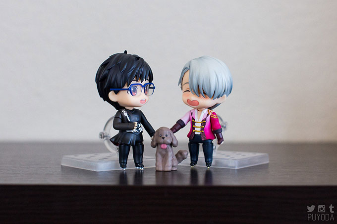 HOMG AT THE YOI FIGURINES! I am dying from the cutes. Holy cow, the two of them with Makkachin!?!??! The fangirl in me is squealing in happiness. And I LMAOed at the caption about Yuuri’s husband being here XD