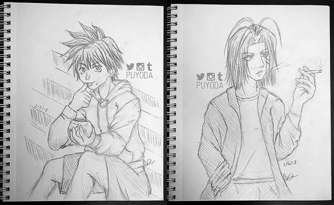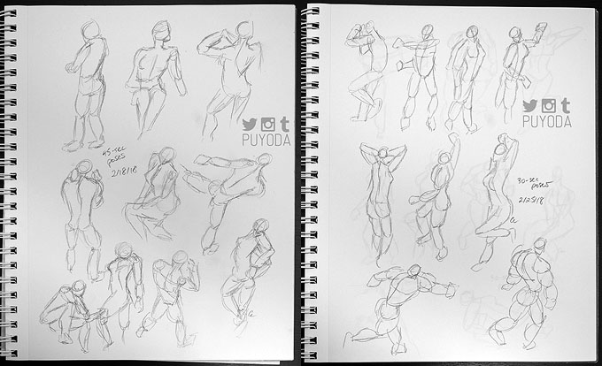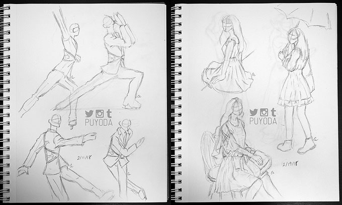 I also took part in Fill-a-Page February, which is to fill a sketchbook page every day in February. I found this to be a lot less stressful than Inktober, since I could do quick sketches for days where I had less time. It actually made me realize that I can’t really use lack of time as an excuse to not draw. I mean, a page of 10 pose sketches takes me less than 8 minutes when I do 45-seconds per pose, and it’s even shorter once I got used to doing 30-seconds per pose. (Exercise is at Posemaniacs.)
