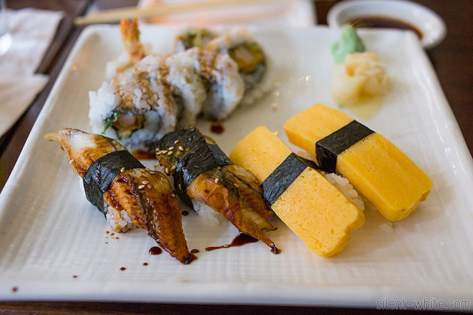 When everyone got back, we swam in the pool together for a bit before heading to a nearby sushi place for dinner. The other downside of being pregnant is that I can’t eat raw fish, so I had to stick to rolls and nigiri with cooked pieces.