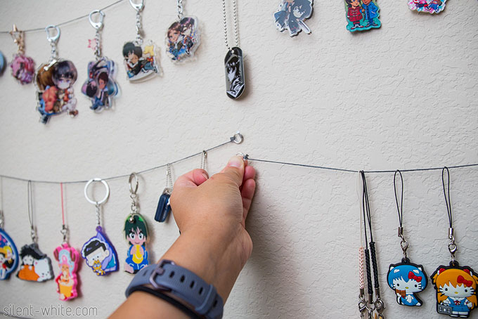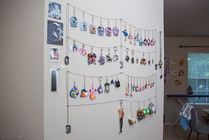 On one side of the entryway, I made use of the wall space to hang up keychains and cellphone straps I’ve been collecting. I do actually use some of the ones I buy on keys, bags, and my phone, but… I also buy way too many. (I have artwork by Rezina hung up here too!)