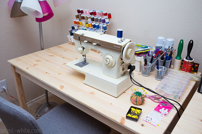 Wow! I love your sewing room 🙂 It’s so nice and bright. The keychain and phone charms on the wall is SO cute and I love how you have them hung up!